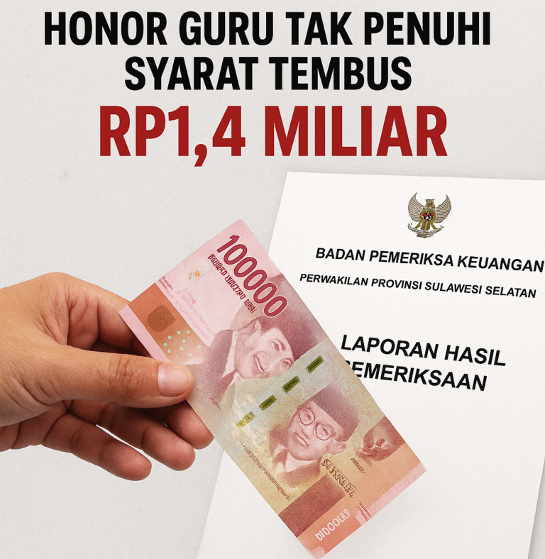 Dalam Laporan Hasil Pemeriksaan (LHP) Nomor 34.B/LHP/XIX.MKS/05/2025 tertanggal 23 Mei 2025, BPK menemukan pembayaran honor kepada guru non-ASN yang tidak memenuhi persyaratan hingga membebani keuangan daerah Rp1.405.525.000.